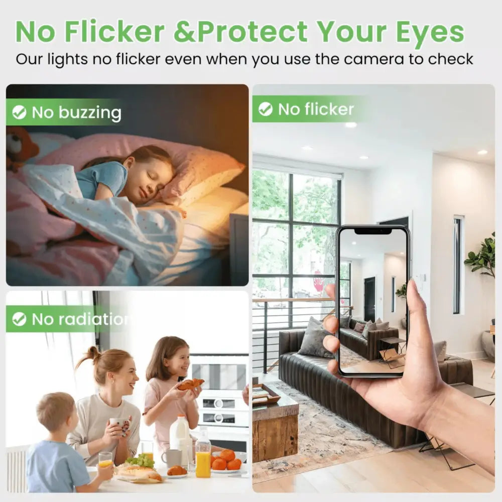 • Flicker-Free Technology: Provides consistent, comfortable lighting.
