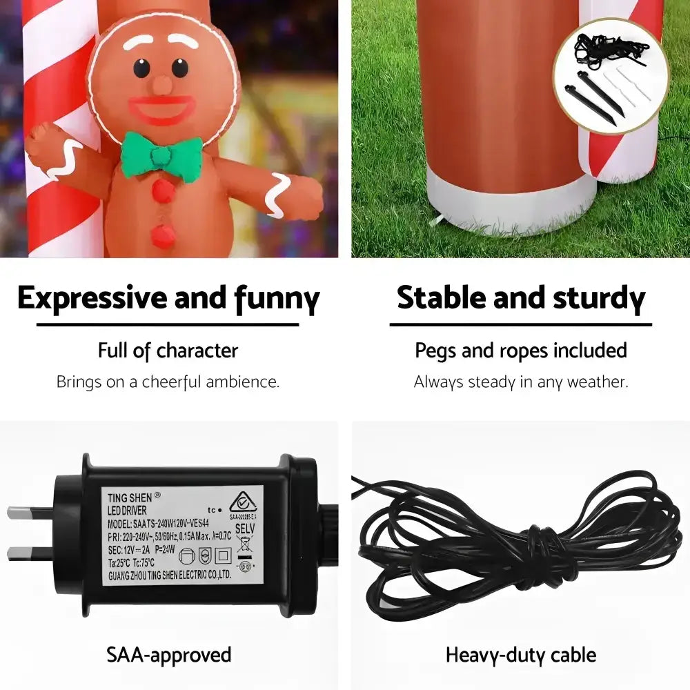 Add festive charm to your home with our Christmas Inflatable. Crafted with water-repellent and UV-resistant materials, it is perfect for indoor and outdoor use. The built-in air blower ensures effortless inflation. For quick storage, simply unzip and deflate. Pegs and ropes are also included for secure ground anchoring, bringing you peace of mind. Create a magical holiday display effortlessly with this delightful inflatable centerpiece!
