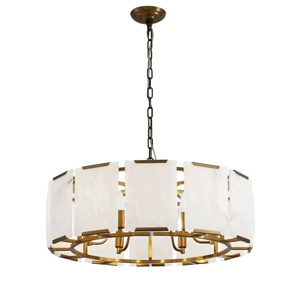 The Cafe Lighting Florence Antique Brass 6 Light Alabaster Pendant combines timeless design with modern elegance. Crafted with sharp, clean alabaster stone framed by exquisite antique brass metalwork, this pendant creates a functional yet sophisticated showpiece. Its round design makes it a dreamy addition above dining tables, adding warm ambiance and understated luxury to any room.