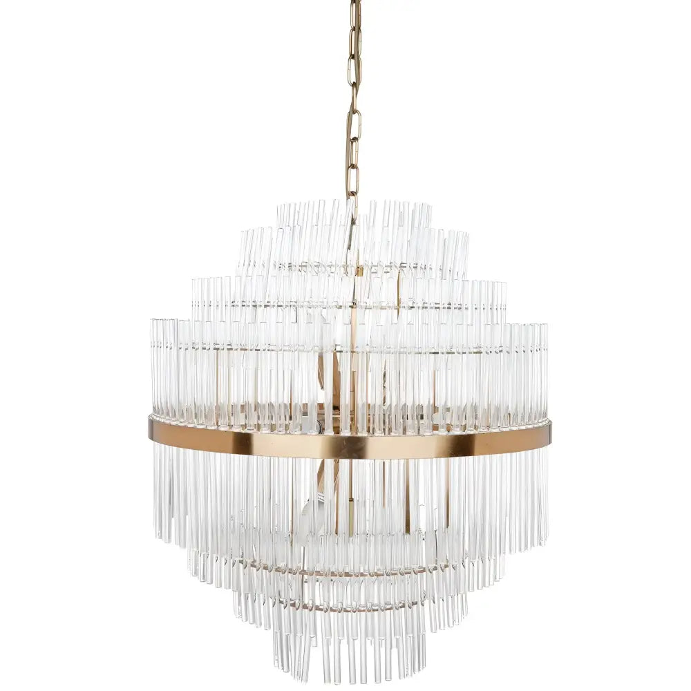 Grand and sculptural, the Cafe Lighting Lawrence Pendant brings an exceptional blend of elegance and drama to your space. With hundreds of clear glass rods suspended from a polished brass frame, this pendant is a stunning homage to Art Deco glamour. Perfect as a centrepiece in living areas or dining spaces, the Lawrence Pendant commands attention and transforms interiors into luxurious settings.