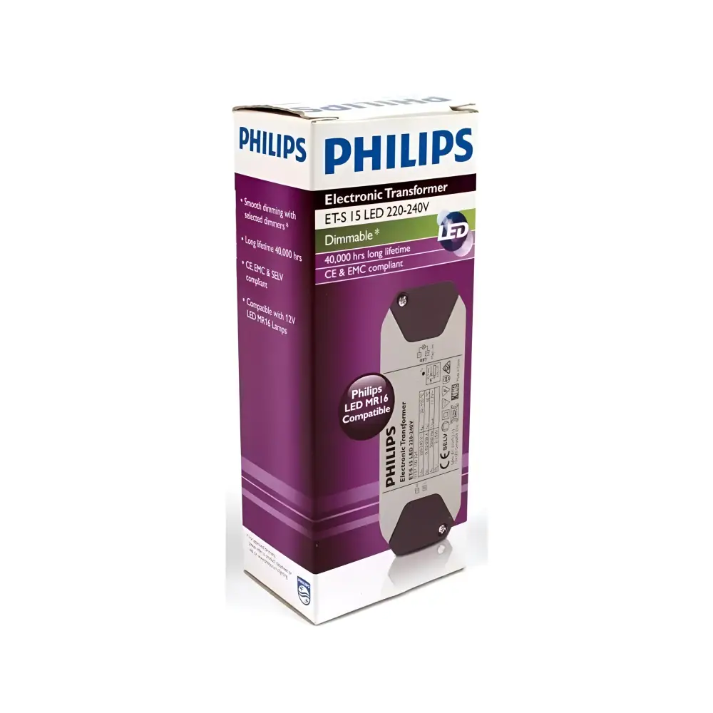The Philips Electronic Transformer ET-S 15 LED 220-240V is a High-Frequency electronic transformer for operation with 12V halogen and LED lamps. Smooth dimming with selected dimmers and long life of up to 40,000 hrs.