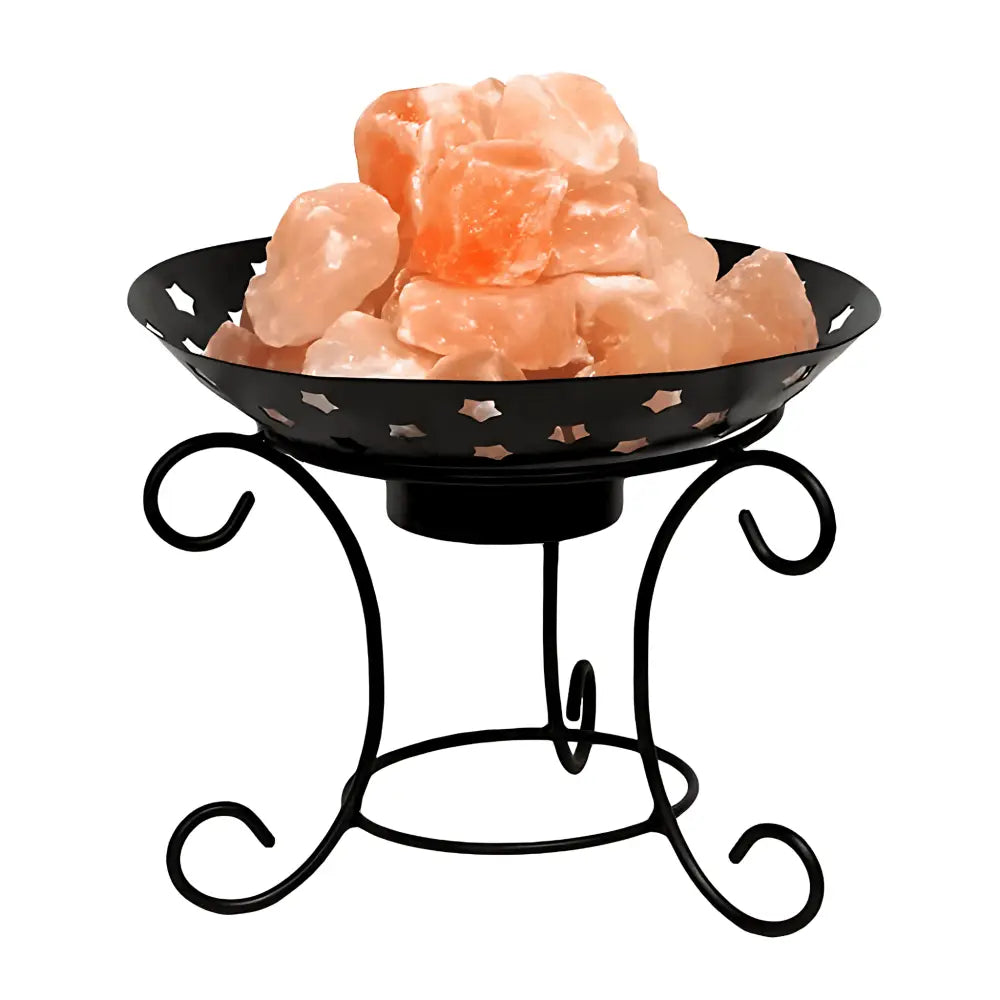• Design: Handcrafted Himalayan salt crystals in a stylish iron fire bowl