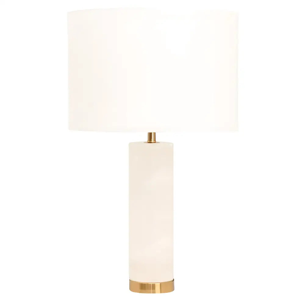 Unpretentious luxury and slender in design, the Kolari Table Lamp features a divine alabaster and brass-finished cylindrical base topped with a fresh faux off-white linen drum shade. Perfectly proportioned, the Kolari Table Lamp is a versatile piece that is at home in a classic or contemporary space. Note: Contains natural stone, so colours/finishes may vary, making each piece unique.
