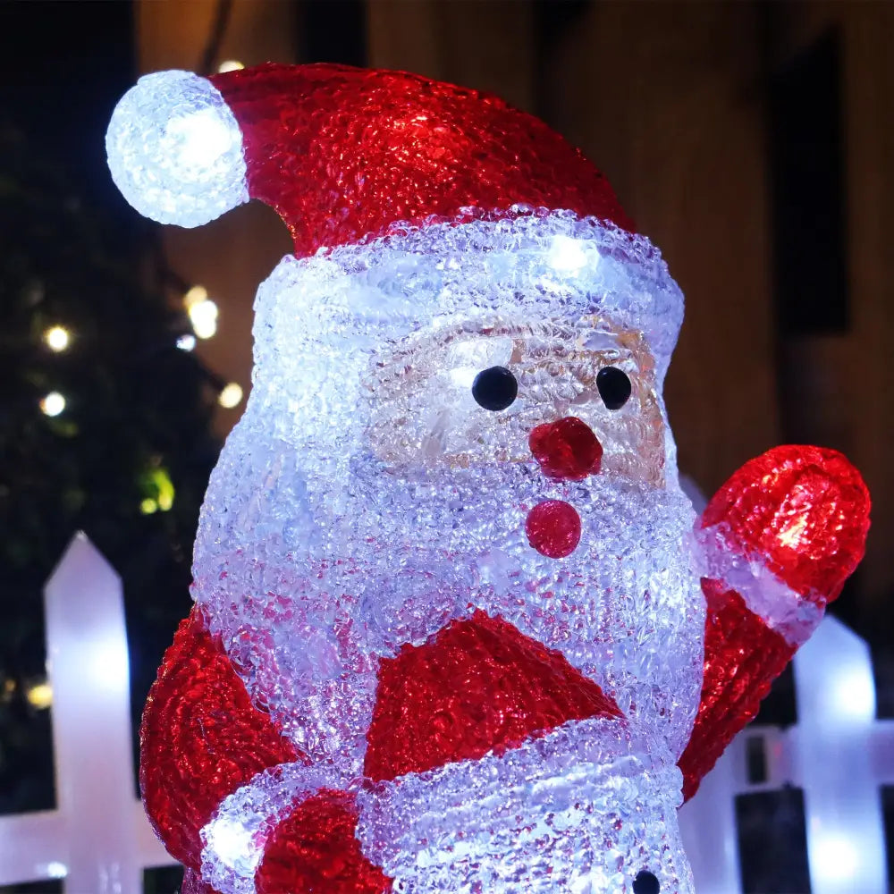 Crafted for versatility, the IP44-rated fixture suits indoor and outdoor use, keeping the plug undercover for protection. Powered by a plug-in source at 31V/3.6W, it includes a 7m clear lead wire for flexible placement. The acrylic stacked Christmas characters enhance festive atmospheres, delivering durable, energy-efficient lighting that elevates seasonal celebrations with enduring appeal.