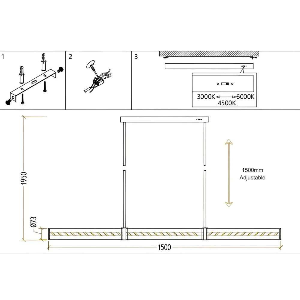 - Size: Length 1500mm x Height (adjustable) 1500mm x Depth 73mm