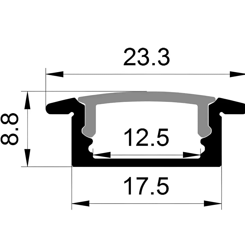 This LED aluminium profile is designed to be recessed mounted in medium/shallow sizes, providing a clean and sophisticated look to any LED strip light installation. Available with an anodised matte silver finish, the profile comes with a diffused cover. Each 1 meter length is supplied with a lens, 1x pair of end caps, and 2x mounting clips, adding both aesthetic value and practical benefits. These include protection against dust and humidity, and acting as a heat sink for higher power LED strips that can produce damaging levels of heat, ultimately extending the lifespan of the LEDs.