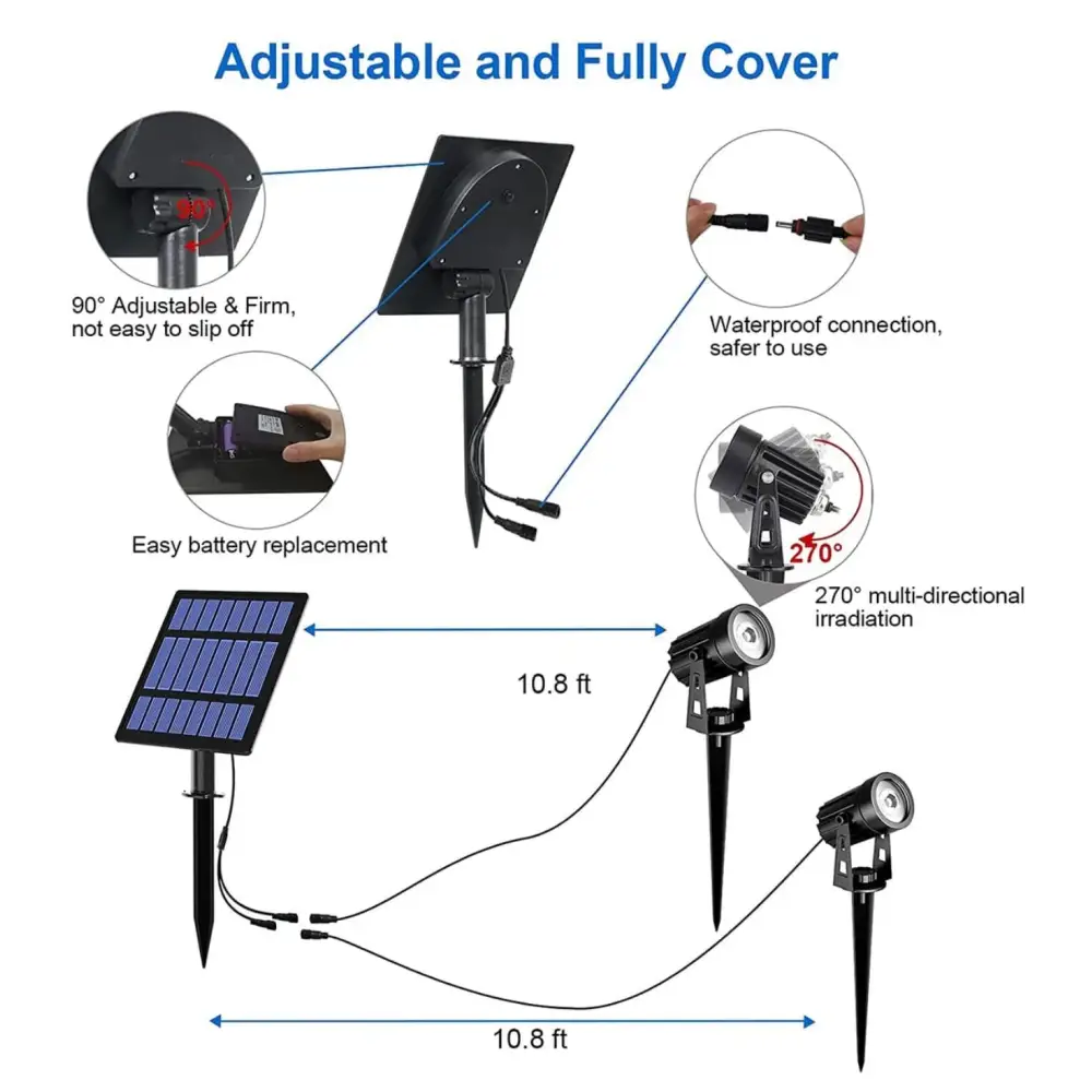 Solar Powered 4 x LED Garden Spotlights – 400 Lumen | IP44 Weatherproof