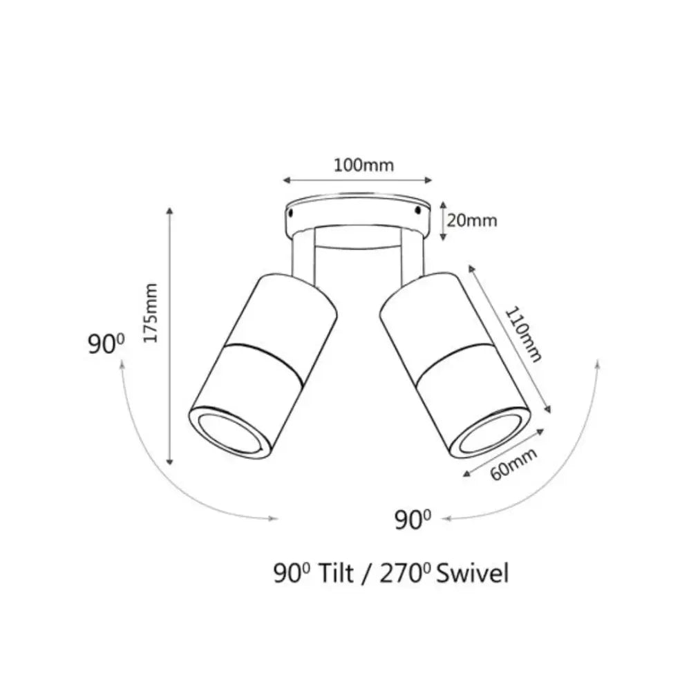 Utanför Pillar Tri-Colour LED 2-light Adjustable Wall Spot